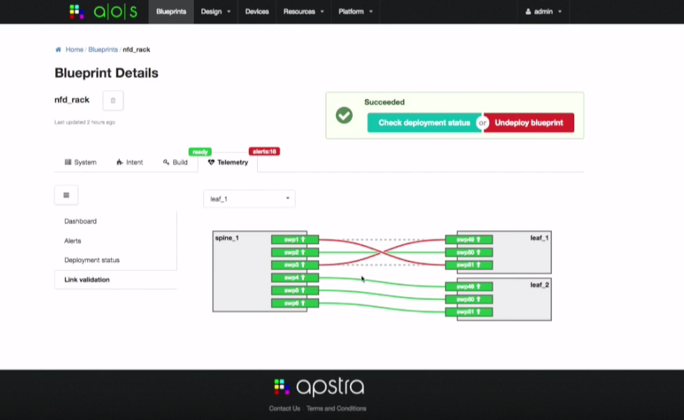 AOS also validates running configuration in even a multi-vendor network. That means the folks at Apstra built so much logic into their software that you can swap out switches from different vendors and AOS would find the diffs automatically applying the necessary changes to produce the intended state. That’s just amazing. Even if you’re a one-vendor-shop, this is still utterly amazing.