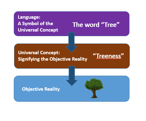When you read the word tree, I’m sure you immediately understood some concept of a tree. Maybe you thought of an oak tree whereas another reader thought of an elm. My family vacation is fast approaching, so I thought of a palm tree. However, we all understood something inherently the same: treeness. The essence of what we agree a tree is can be communicated by a simple arrangement of lines on a screen. However, the word doesn’t symbolize a tree; it only symbolizes the concept of a tree that our society has agreed is the correct association for the word. The word tree symbolizes treeness, or some vague notion we all agree upon of some object with a trunk, branches, and some type of leaf structures. Therefore a word is a secondary symbol signifying a concept which only imperfectly symbolizes an objective reality.