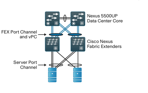 I’ve been in many data centers in which there was no redundancy at the server access layer though redundancy on several levels at the core. I’ve also seen designs in which there was access layer redundancy, top of rack redundancy but then no core fault tolerance. The above drawing is a simplified image of an ideal scenario in which servers use LACP to create port channels to each access layer FEX, and then each FEX uses port channel vPCs to dual home to disparate core switches also joined by a port channel. The cost associated with eliminating every conceivable point of failure is tremendous, but this basic design using what in 2015 is common technology provides a much more resilient application delivery medium.